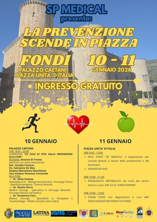 La prevenzione sanitaria incontra i cittadini nel cuore della città. Sabato 10 e domenica 11 gennaio 2026 arriva a Fondi “La prevenzione scende in piazza”, l’iniziativa dedicata alla salute e al benessere promossa